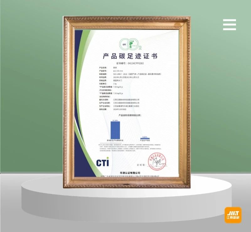 2024年江南新材率先以銅球系列產(chǎn)品為代表,申請(qǐng)獲得產(chǎn)品碳足跡證書(shū)。公司努力踐行保障銅球產(chǎn)品在整個(gè)制造生命周期的低碳環(huán)保要求,從原材料采購(gòu)、生產(chǎn)制造,到產(chǎn)品運(yùn)輸、使用以及最終廢棄處理,每一個(gè)環(huán)節(jié)上努力精進(jìn),以達(dá)到減碳減排的目標(biāo)。