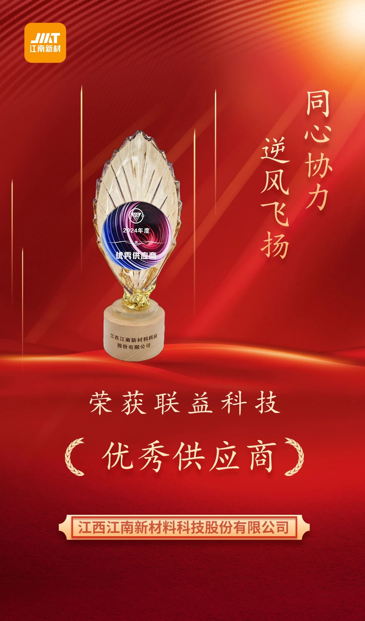 會上,表彰并鼓勵優(yōu)秀的供應(yīng)鏈合作伙伴,江南新材憑借卓越的品質(zhì)與合作表現(xiàn)榮獲了聯(lián)益科技授予的“優(yōu)秀供應(yīng)商”。