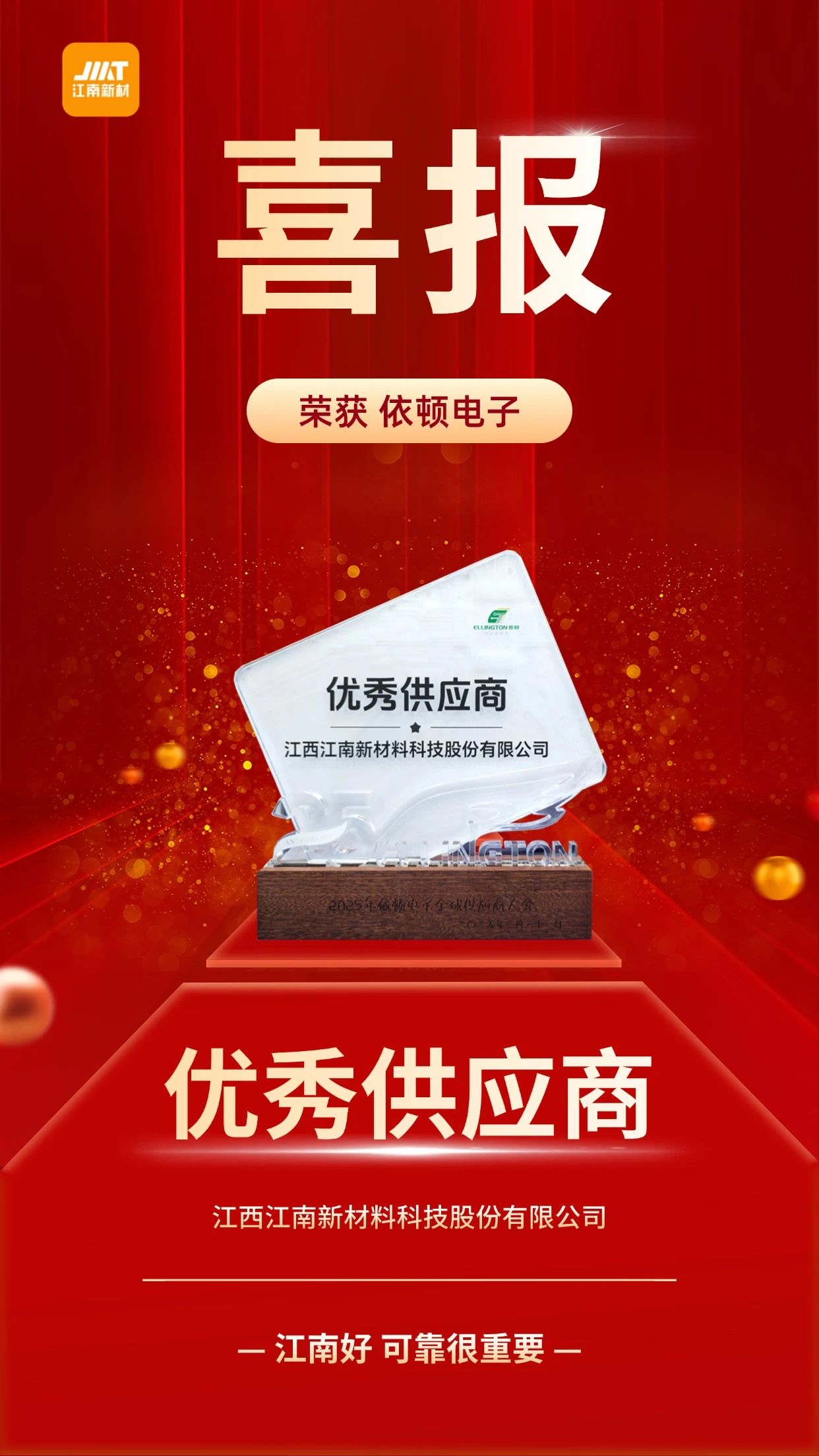 江南新材榮獲依頓電子2024年度“優(yōu)秀供應(yīng)商”!